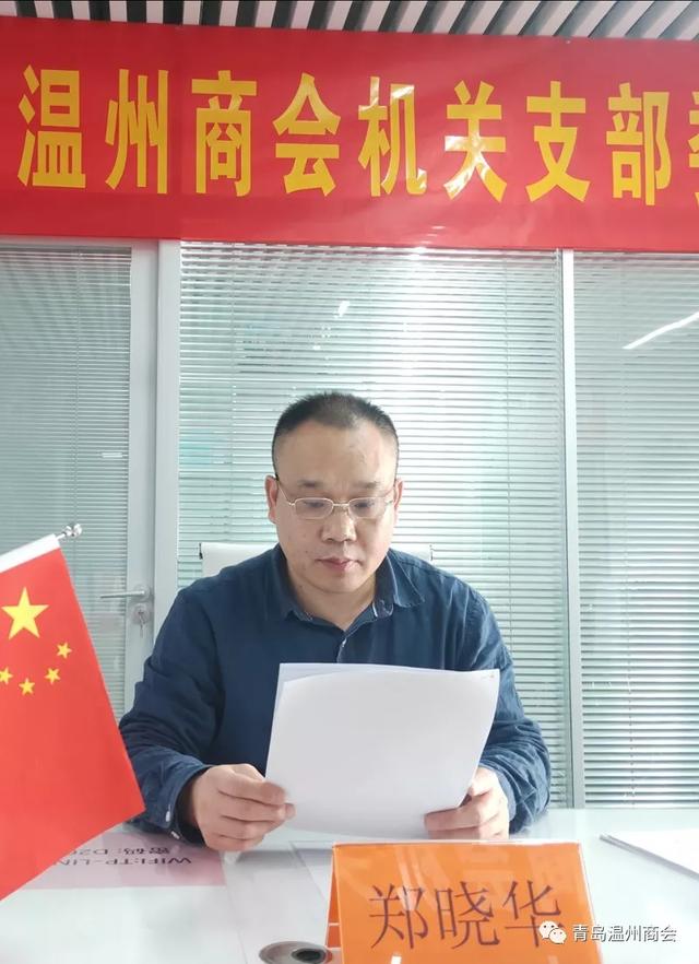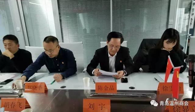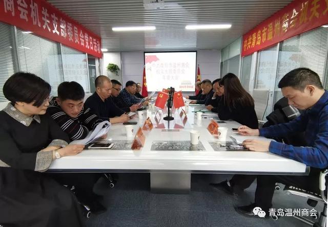 12月18日,青岛市温州商会机关党支部2019年年终总结会在机关支部党员活动室召开,党支部书记郑晓华、组织委员陈金品、党员胡春飞、何必琼、刘宇、杨坚、徐志坚、曹详杰、于鹏、徐雯怡,预备党员余少英,入党积极分子蒋振超、徐显立、陈嵘豪参加党日活动。会议由组织委员陈金品主持。